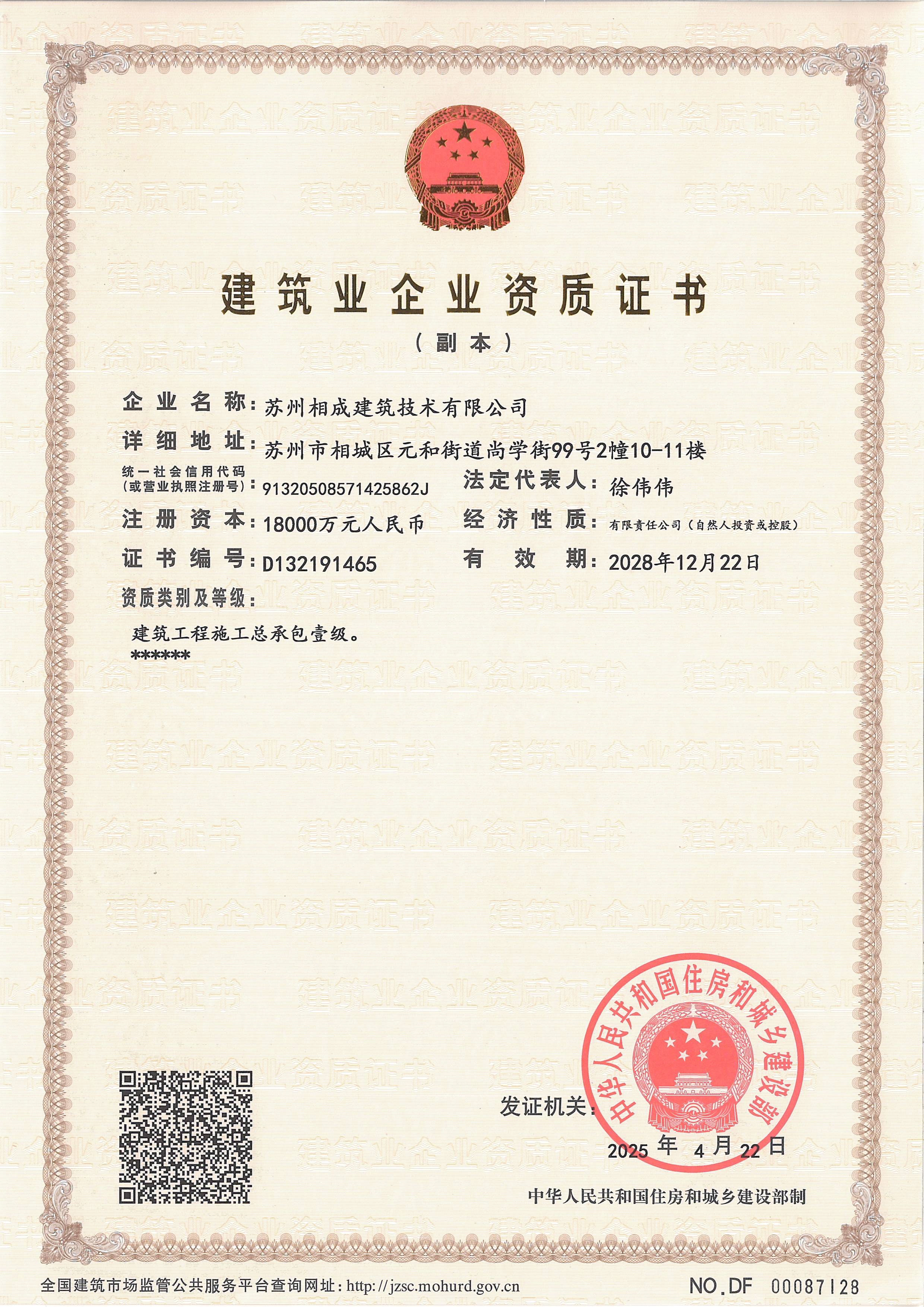 蘇州相成建筑技術(shù)有限公司是一家以提供建筑開發(fā)服務(wù)為主的建筑企業(yè),公司位于蘇州市相城區(qū),成立于2011年3月,注冊(cè)資本 10000萬(wàn),歷經(jīng)13年的努力于2022年7月獲省住建廳頒發(fā)房屋建筑工程施工總承包壹級(jí)資質(zhì),市政公用、建筑裝飾、地基基礎(chǔ)、消防設(shè)施、鋼結(jié)構(gòu)工程等專業(yè)承包二級(jí)資質(zhì); 2023 年6月份增設(shè)房屋建筑工程監(jiān)理甲級(jí)、市政一級(jí)監(jiān)理資質(zhì);目前是相城區(qū)唯一一家集施工總承包一級(jí)和建筑工程監(jiān)理甲級(jí)資質(zhì)的企業(yè)。